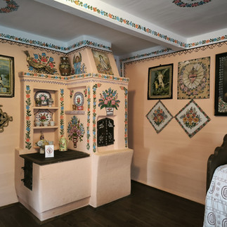 Az előtérben látható, mészfestékkel festett fehér mintás fekete mennyezettel indult Curyłowa munkássága, 10 éves volt, amikor festette. Mivel kiderült, hogy Isten adta tehetsége van a festéshez, ezt kö-vetően szülei megengedték neki, hogy azt fessen, amit csak akar.